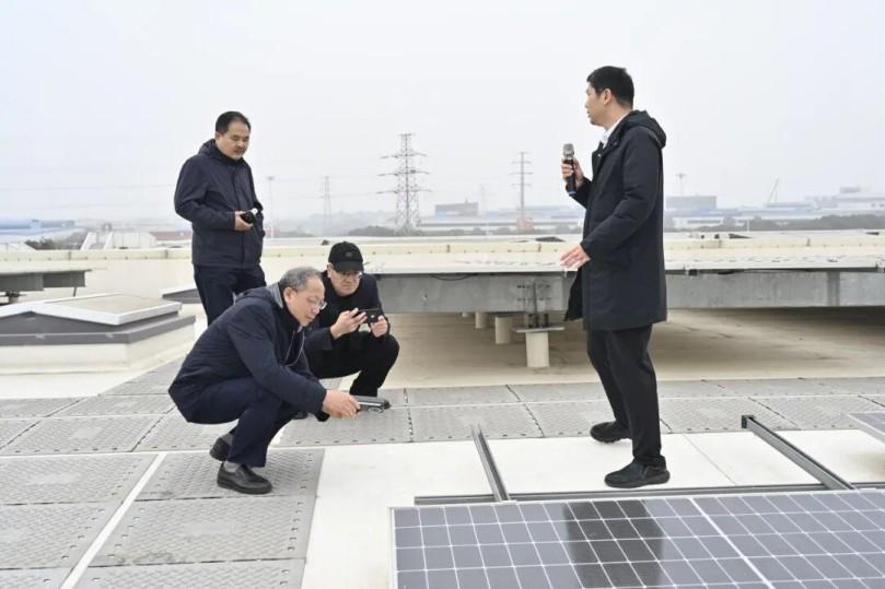 Subsequently, the observation team climbed onto the roof of the Canlon Polymer Industrial Park factory building to visit and exchange ideas on the installation process of the vertical support, the layout of the fasteners, and the installation scheme of the photovoltaic modules.