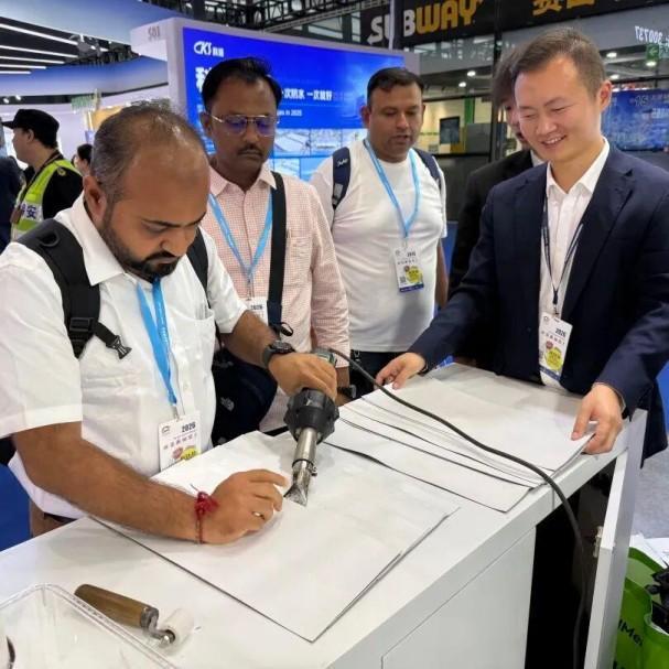 During this exhibition, many international friends visited the interactive area of Canlon's booth to experience the convenient construction of the integrated waterproofing system. Among them were professionals from India, Colombia, and Kazakhstan. The on-site technicians warmly received them and provided English explanations, making Canlon's quality concept of "international quality at Chinese prices" more deeply rooted in people's hearts.