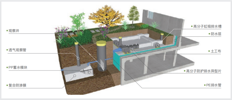In addition, the industrial park has innovatively developed and launched the Canlon Planting Roof Sponge City Siphon Drainage Collection System . This system collects and recycles surface water and infiltrated water, achieving integrated waterproofing and drainage while also meeting the national requirements for water conservation in green buildings and the requirements for infiltration, retention, storage, purification, utilization, and drainage in sponge city construction.