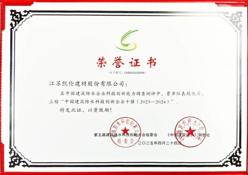 From April 23rd to 25th, the 5th Building Waterproofing Technology Innovation Conference was held in Suzhou. Canlon, leveraging its continuous R&D and innovation capabilities through eight innovation platforms including the Suzhou Advanced Technology Research Institute, was named one of the Top Ten Chinese Building Waterproofing Technology Innovation Enterprises of the Year, ultimately achieving fourth place.